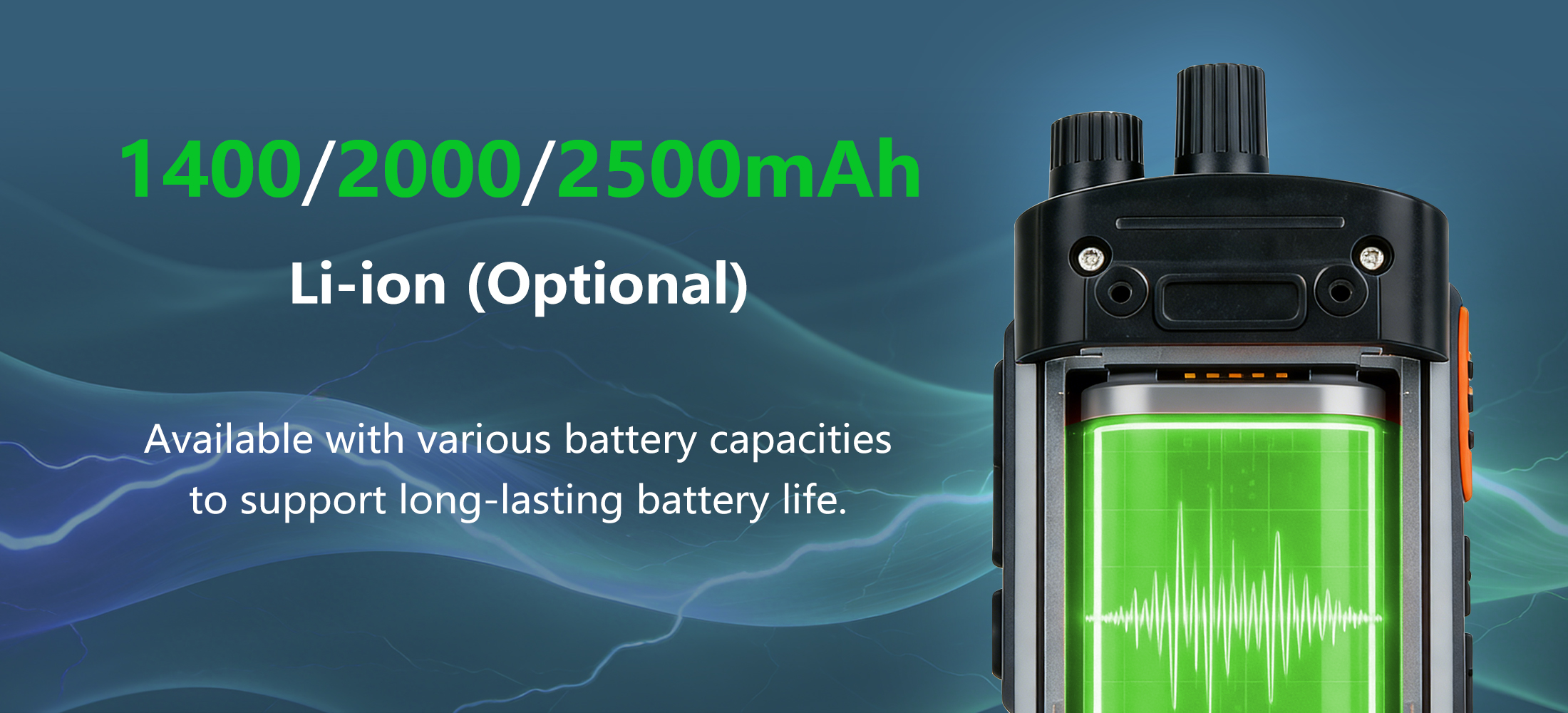 1500mAh Li-ion 2200mAh Li-ion(Optional) 2500mAh Li-ion(Optional) |
